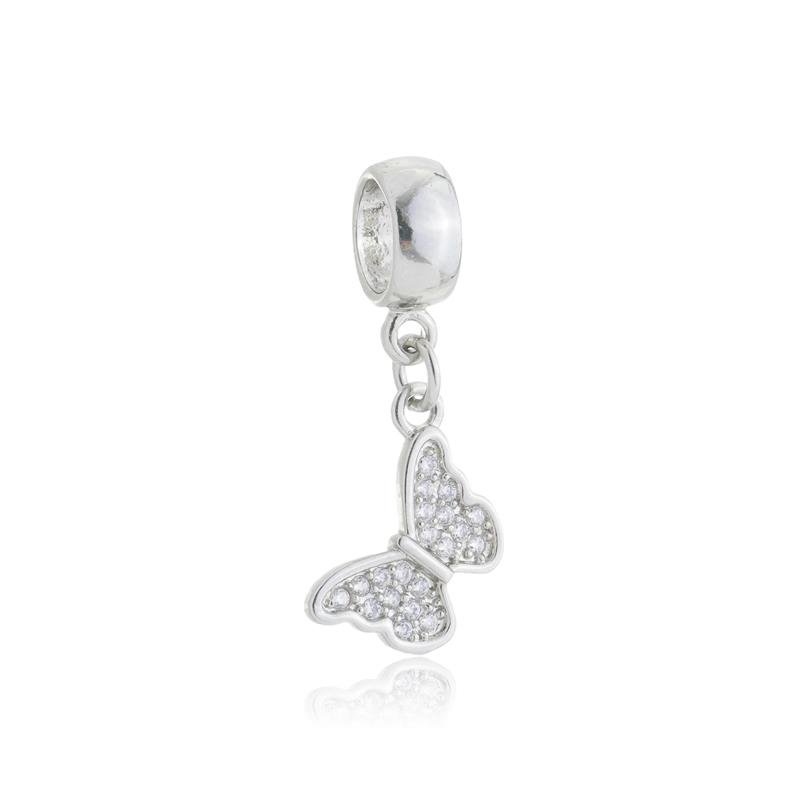 BERLOQUE PENDENTE BORBOLETA CRAVEJADA BANHADO A PRATA
