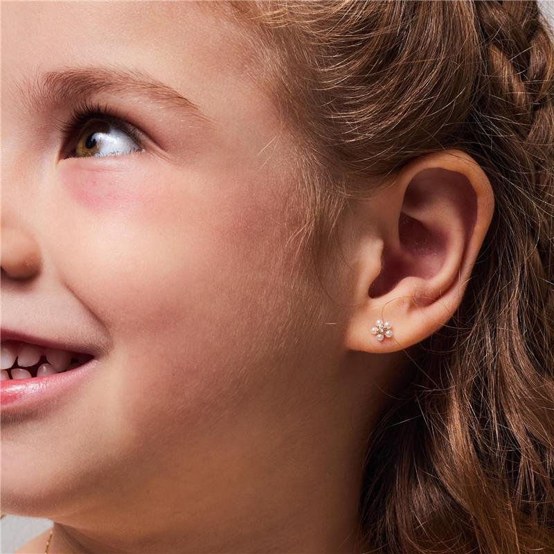 Brinco Gabriela Infantil Flor com Pérola com Zircônia, semijoia banhado a ouro 18k e desenvolvida com tecnologia hipoalergênica.Dica de uso: Delicado e encantador, o brinco infantil é perfeito para completar o look das pequenas com graciosidade. Com pétalas de pérola e uma zircônia central que adiciona um brilho especial, é uma peça leve e confortável para acompanhar todos os momentos com ternura e estilo. Combine com a mamãe e arrase.