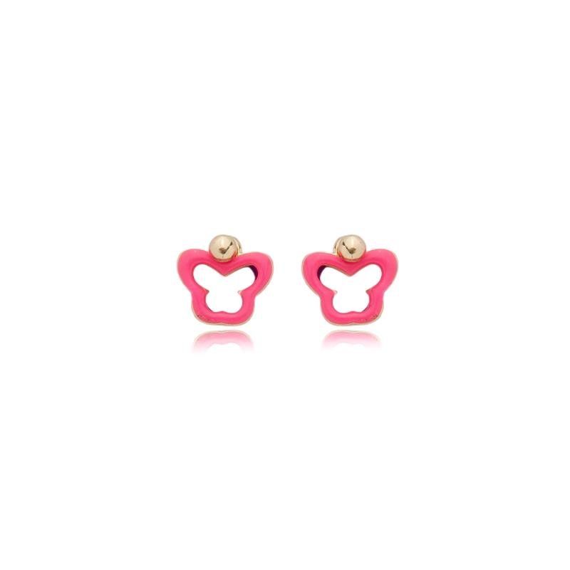 Brinco infantil borboleta resinada Antonella, semijoia banhado a ouro 18k e desenvolvida com tecnologia hipoalergênica.Dica de uso: Brinco infantil Antonella com pingente de borboleta é uma semijoia exclusiva que você só encontra na Art’s, desenvolvido especialmente para as pequenas que amam charme e cor! Com design que traz delicadeza e versatilidade com uma delicada borboleta vazada, ele tem um toque especial com resina dupla face de um lado rosa e o outro roxo, permitindo que a criança escolha a cor que quer usar no momento. Combine com o colar, anel e pulseira Antonella e terá um mix incrível.