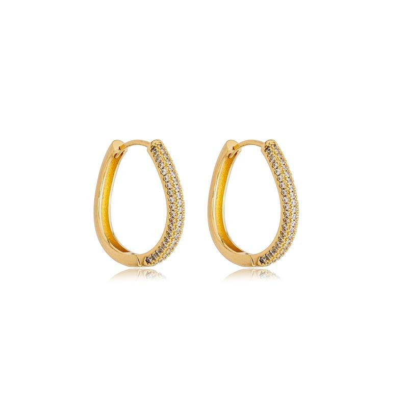 Brinco Joice argola ondulada cravejado zircônia média, semijoia banhada a ouro 18k e desenvolvida com tecnologia hipoalergênica.Dica de uso: Uma argola de tamanho médio com design ondulado que traz movimento e personalidade, enquanto as zircônias cravejadas garantem um brilho sofisticado e delicado. Leve e confortável, é perfeita para quem busca uma peça elegante, versátil e com presença sutil que valoriza qualquer produção.