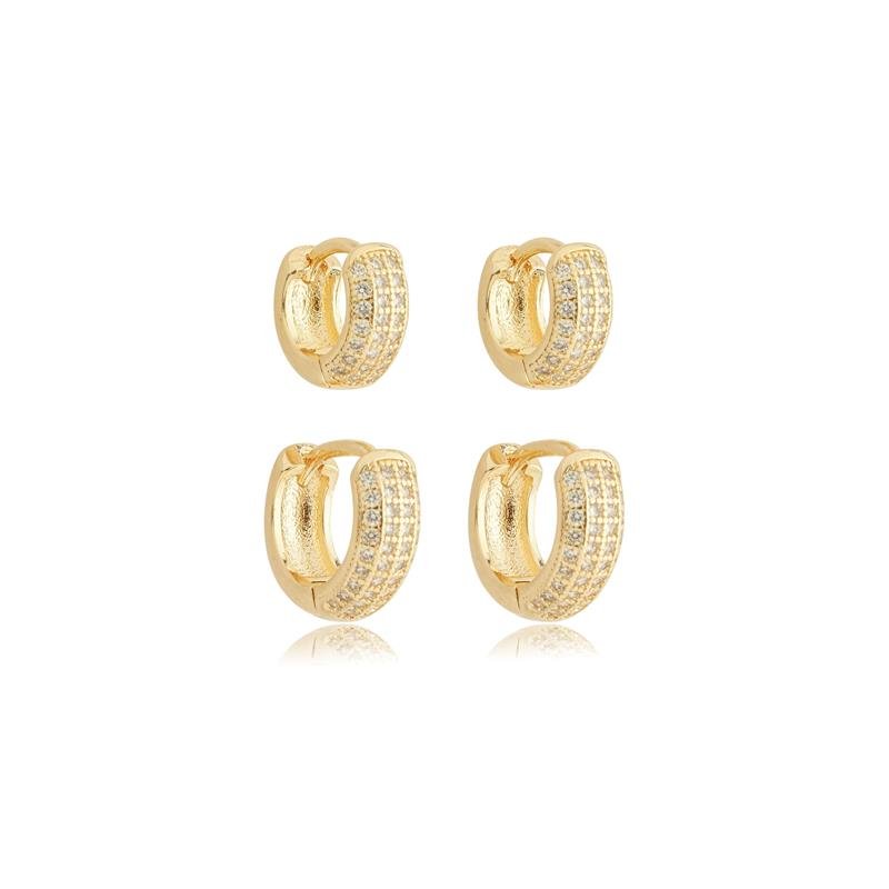 BRINCO KIT DUPLA DE BRINCOS ARGOLA GROSSA CRAVEJADA BANHADO A OURO