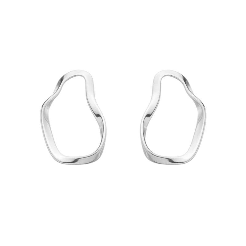 BRINCO LUANA ORGÂNICO FORMATO OVAL ONDULADO BANHADO A PRATA