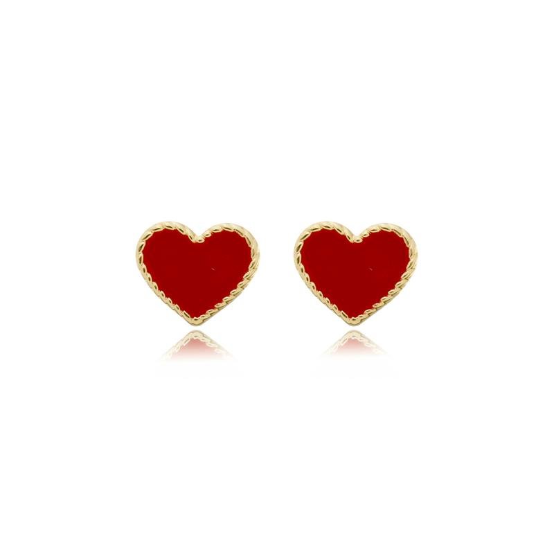 BRINCO NINA INFANTIL CORAÇÃO VERMELHO RESINADO BANHADO A OURO 18K