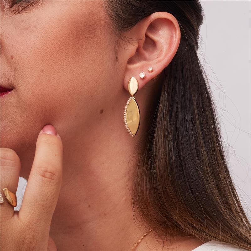 BRINCO PALOMA FOLHA COM DETALHE CRAVEJADO BANHADO A OURO 18K