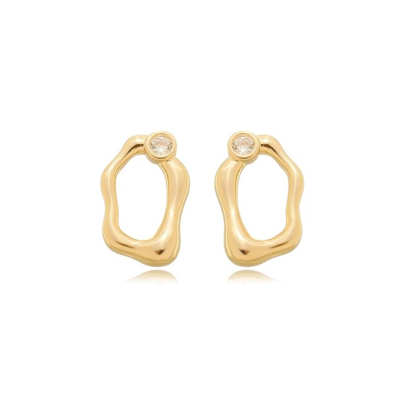 Brinco Isabela Orgânico com ponto de luz, semijoia banhado a ouro 18k e desenvolvida com tecnologia hipoalergênica.Dica de uso: O Brinco Isabela é uma peça que traduz sofisticação, modernidade e elegância em um só acessório. Inspirado nas formas irregulares da natureza, o design orgânico traz um toque sofisticado e despojado, perfeito para quem busca ousadia sem abrir mão da delicadeza. As curvas fluídas e o acabamento destacam o brinco, enquanto os detalhes cravejados com zircônias adicionam um charme especial e um brilho sutil.