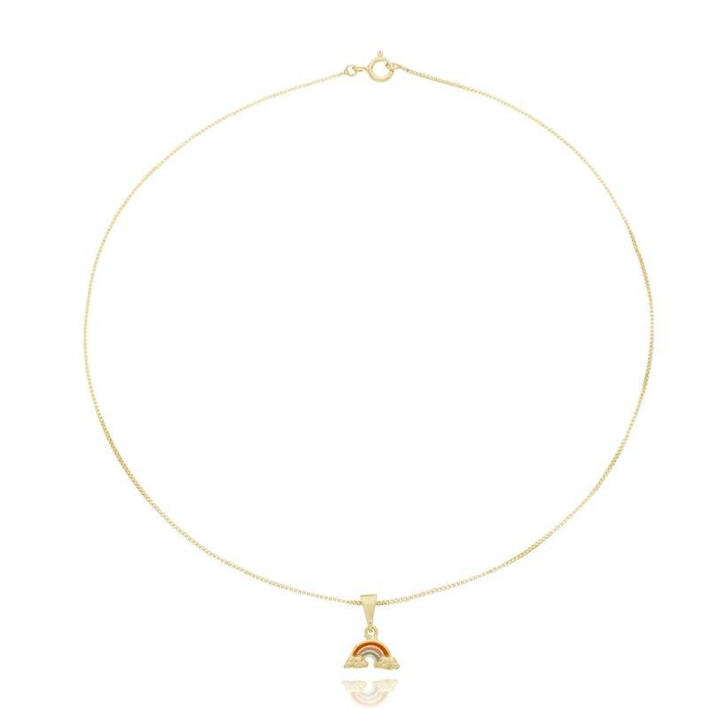 Colar infantil corrente veneziana e pingente Arco Íris colorido, semijoia banhada em ouro 18k e desenvolvida com tecnologia hipoalergênicaDica de uso: Adicione um toque de fofura ao look da pequena com nossa linha infantil, com o pingente de arco íris colorido ele adiciona um toque de delicado e fofura ao visual