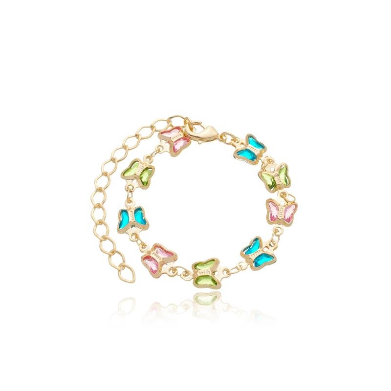PULSEIRA INFANTIL BORBOLETA COLORIDA BANHADO A OURO 18K